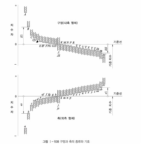 구멍의 위 치수 허용차는 기호 ES에 따라, 축의 위 치수 허용차는 기호 es에 따라 표시한다.