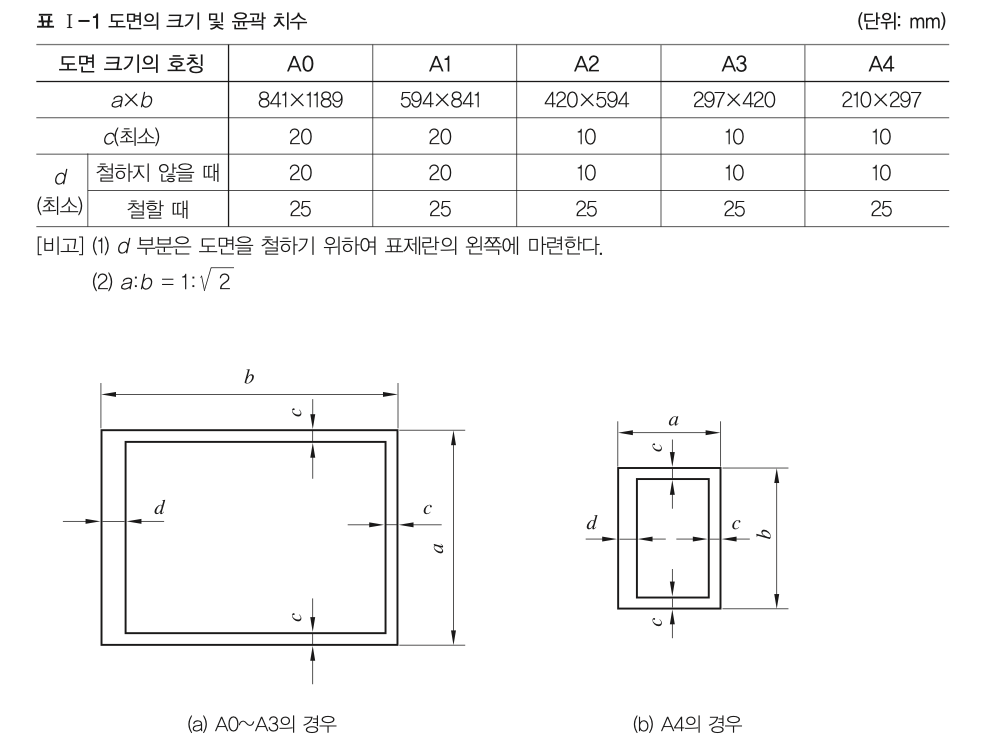 도면의 크기가 일정하지 않으면 보관과 관리가 불편하기 때문에 도면은 반드시 일 정한 크기로 만들어야 한다.