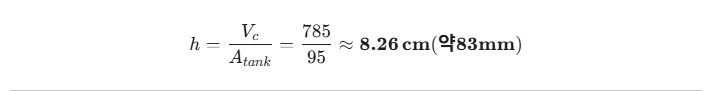 - 단면적 (Atank) : 25 x 3.8 = 95 ㎠